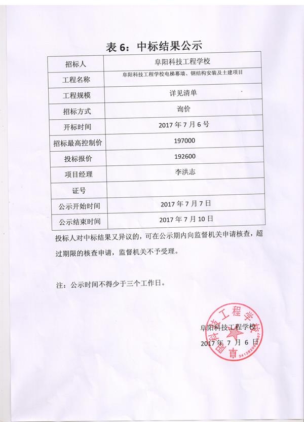 阜阳科技工程学校电梯幕墙、钢结构安装及土建项目询价