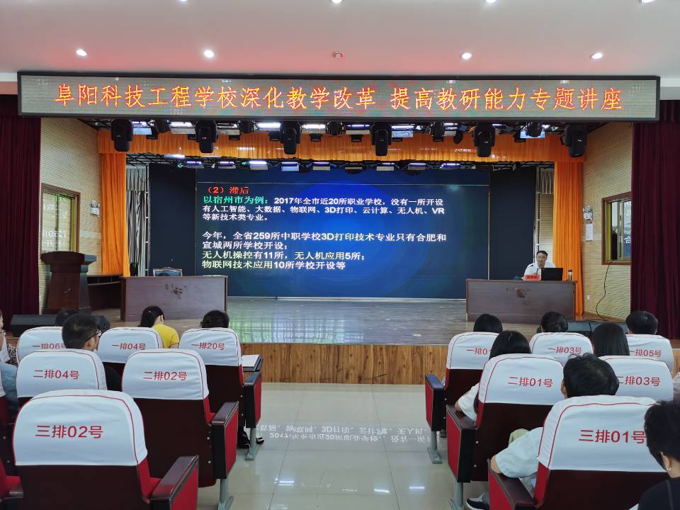 为了进一步加强教师队伍建设,促进教师专业化成长,全面提升学校教师思想政治素质和职业道德素养,使学校教科研工作再上新台阶,8月29日,阜阳科技工程学校特邀请安徽工商职业学院副院长汪贤武教授、安徽科技学院副教授马海祥莅校,举行了《深化教学改革、提高教研能力》《师德师风与教师礼仪》专题培训。