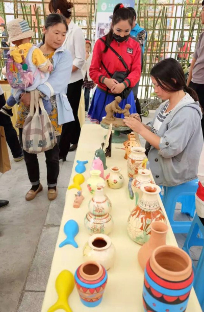 界首彩陶、渔鼓、徽州竹编等非物质文化遗产传承人还在现场展示才艺,吸引了许多文化爱好者驻足观看、学习,甚至有观众现场就表示出要拜师学艺。