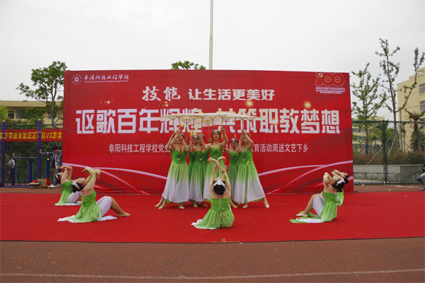 100周年,讴歌新时代党的光辉历程。5月12日,阜阳科技工程学校开展的党史教育文艺汇演暨2021年职业教育活动周文艺下乡巡演走进砖集中心校。