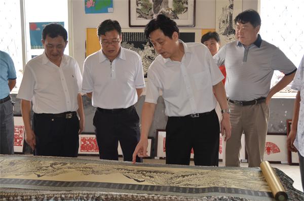 谢广祥一行参观了学校校园,了解学校发展状况、校企合作情况,实地查看了界首彩陶、剪纸等非遗传承工作室,并与国家级非遗传承人王京胜老师亲切交谈,仔细询问了界首彩陶发展现状。
