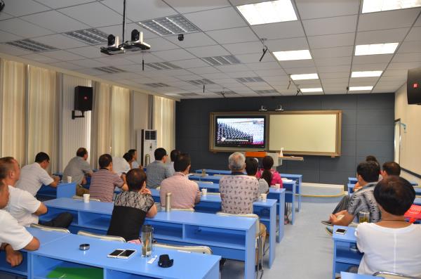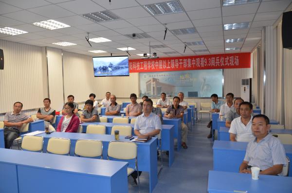9月3日上午八点整,阜阳科技工程学校所有中层以上干部早早来到学校新建录播教室集中观看9.3阅兵式。