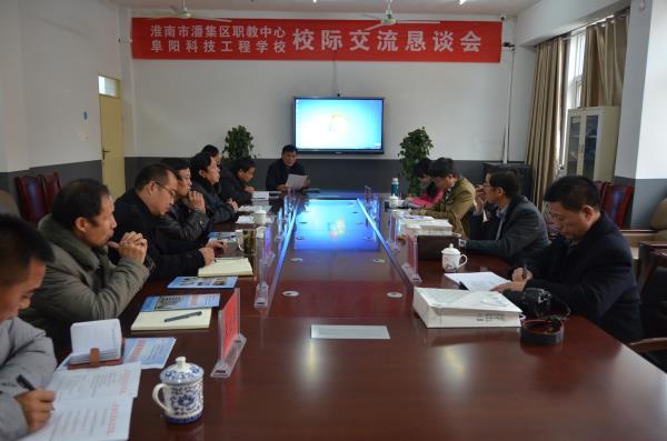 为加强职业院校间交流沟通,11月24日,淮南潘集区职教中心在淮南市潘集区教育局副局长聂敬社带领下到阜阳科技工程学??褂押媒涣餮啊=缡资薪逃指本殖と纬蟛渭咏涣髯富?。
