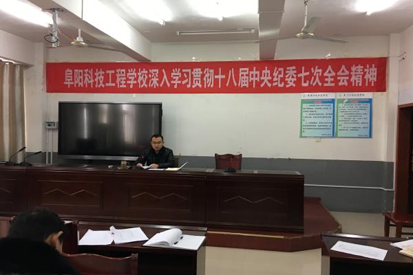 2月7日,阜阳科技工程学校召开全体党员大会,深入学习贯彻十八届中央纪委第七次全会精神。