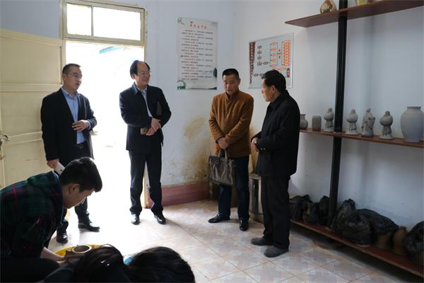 于日锦一行在校长闫锋的陪同下,实地参观了我校校园环境,深入了解了学校办学规模、发展变化、实训室建设等方面相关情况。在校非遗文化传习基地,适逢非遗社团活动日,客人们与王京胜、苗清臣、王银等非遗大师亲切交谈,并饶有兴致地欣赏了非遗社团表演和学生作品展。观赏中,于校长一行对我校非遗社团文化兴趣浓厚,赞不绝口。