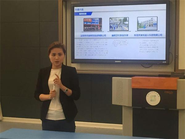 会议听取了李丹关于企业发展情况及机器人专业介绍,并与教师进行了深入交流。李丹表示将全程关注、全力支持学校建设,在学生顶岗实习、教师专业提升、派遣工程师参与课程改革等方面深入合作。