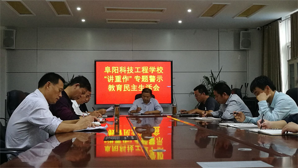 9月5日下午,阜阳科技工程学校党总支召开“讲重作”专题警示教育民主生活会。教育局副局长孙景海、学校党总支委员及支部书记参加会议。
