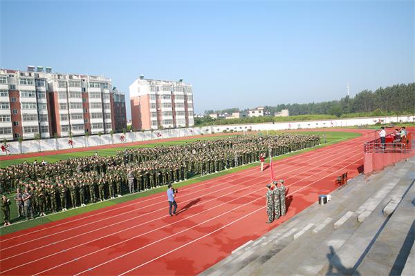 9月7日上午,阜阳科技工程学校举行2017级新生军训开训典礼,共1200余名新生参加。