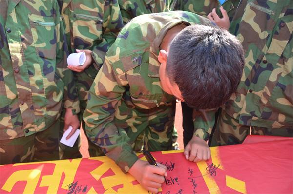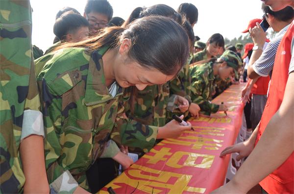 讲座结束后全体学生齐声诵读了岳飞《满江红》,并进行了“汇聚起实现中国梦强军梦的磅礴力量 以优异成绩迎接党的十九大胜利召开”的主题签名活动。