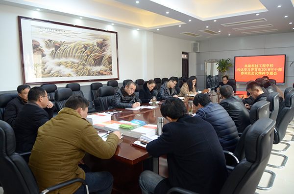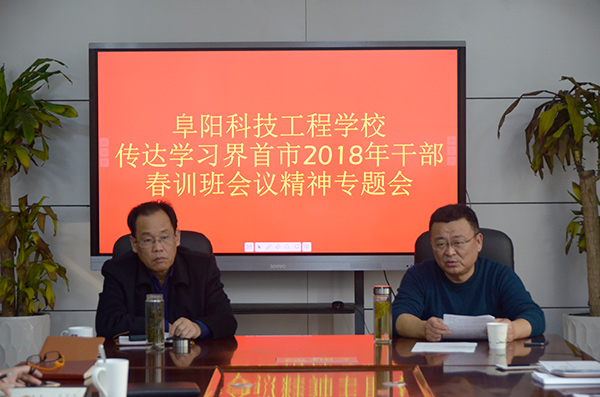 2月28日,阜阳科技工程学校召开传达学习界首市2018年干部春训班会议精神专题会。学校校级班子成员、各部门负责人参加了会议