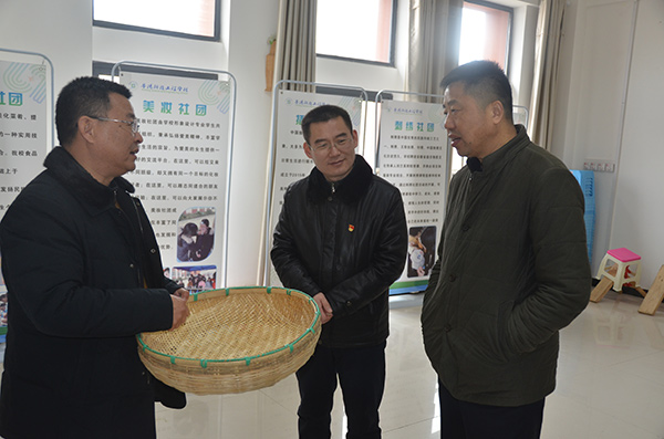 检查组听取了阜阳科技工程学校校长于洪波的汇报,实地查看校园环境,参观了非遗中心剪纸、彩陶、渔鼓等活动室。随后,详细查看了各专业实训室安全器材设备运行情况。