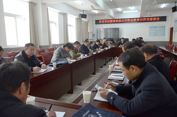 3月16日上午,界首市教育局在阜阳科技学校召开座谈会,具体研究部署2018年我市创建国家级农村职业教育和成人教育示范市工作。教育局副局长孙景海、职成股股长邹盼盼,阜阳科技工程学校校长于洪波,各中心校校长共30余人参与座谈。
