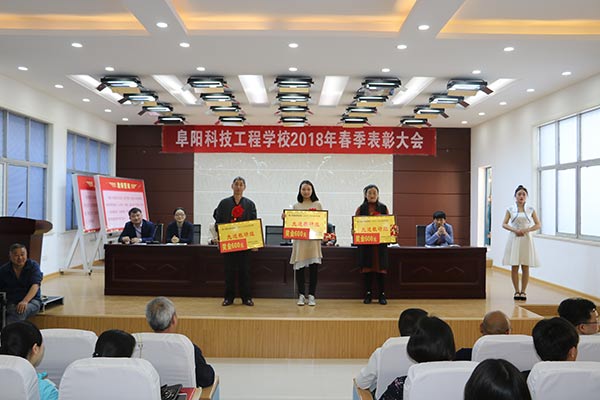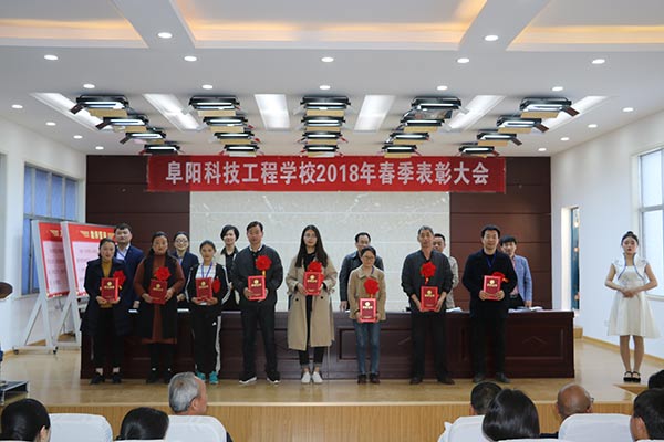 4月9日下午,阜阳科技工程学校2018年春季教师表彰大会在阶梯教室隆重举行。全体教职工参加了会议。