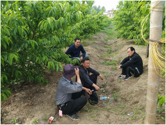 “老牛,您的桃园今年又是大丰收啊!”2018年4月26日,阜阳科技工程学校校长于洪波、党总支书记穆达一行来到小良村贫困户牛云亮的桃园里,与牛云亮一起,席地而坐,亲切交谈,了解水蜜桃的长势,为水蜜桃熟后的销售精心谋划。