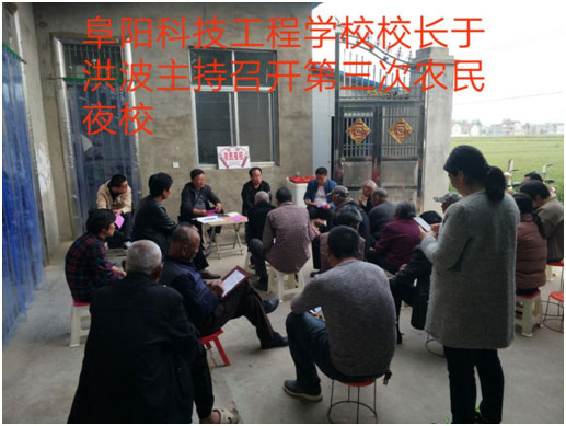 “怎样做一个新时代的新型职业农民?”在农民夜校上,于洪波这样对到课的贫困户说,“新型农民与传统农民的差别在于前者是一种自由选择的职业,后者是一种被动烙上的‘身份’。习近平总书记指出,培养更爱农业、懂农业、善经营的新型职业农民。”于洪波表示,阜阳科技工程学校将结合全国新型职业农民培育发展规划,利用职业教育这一平台,主动作为,扎实服务,积极助力顾集镇构建一支有文化、懂技术、善经营、会管理的新型职业农民队伍。