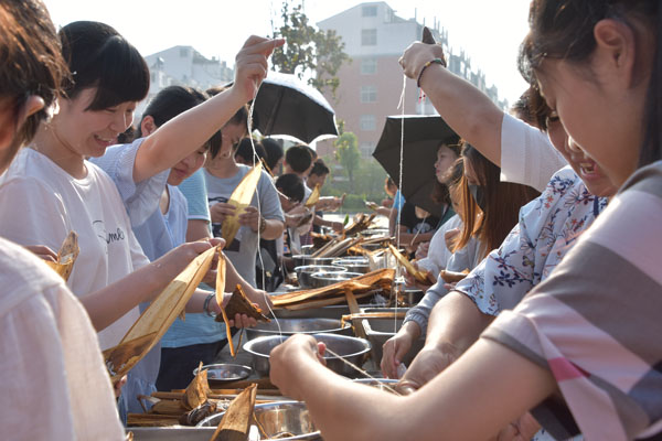 为弘扬中华民族优秀传统文化,丰富学校教职工文化生活,6月20日下午,阜阳科技工程学校举行了“粽叶飘香 幸福校园”教职工包粽子、绣香包活动。