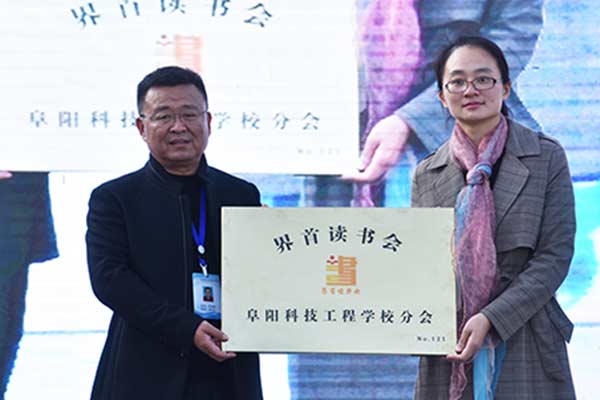 11月9日,在界首市第五届青年联谊“书香有约·秋之浪漫邂逅”活动上,“界首读书会阜阳科技工程学校分会”正式授牌。共青团界首市委书记肖丹丹、阜阳科技工程学校校长于洪波共同参加了授牌仪式。