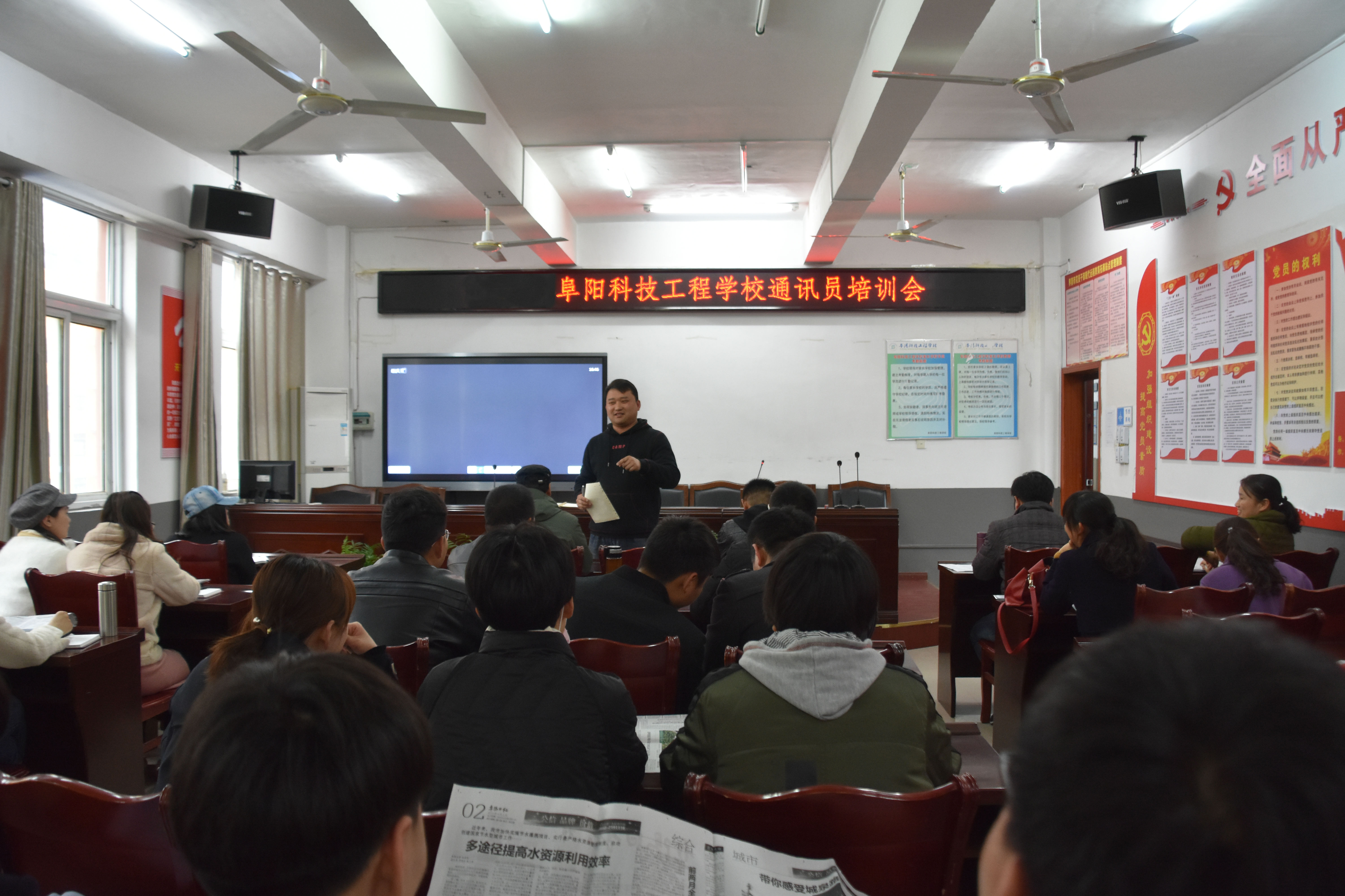 4月9日下午,阜阳科技工程学校举办了通讯员培训会,各部门负责人及通讯员近40人参加了培训。