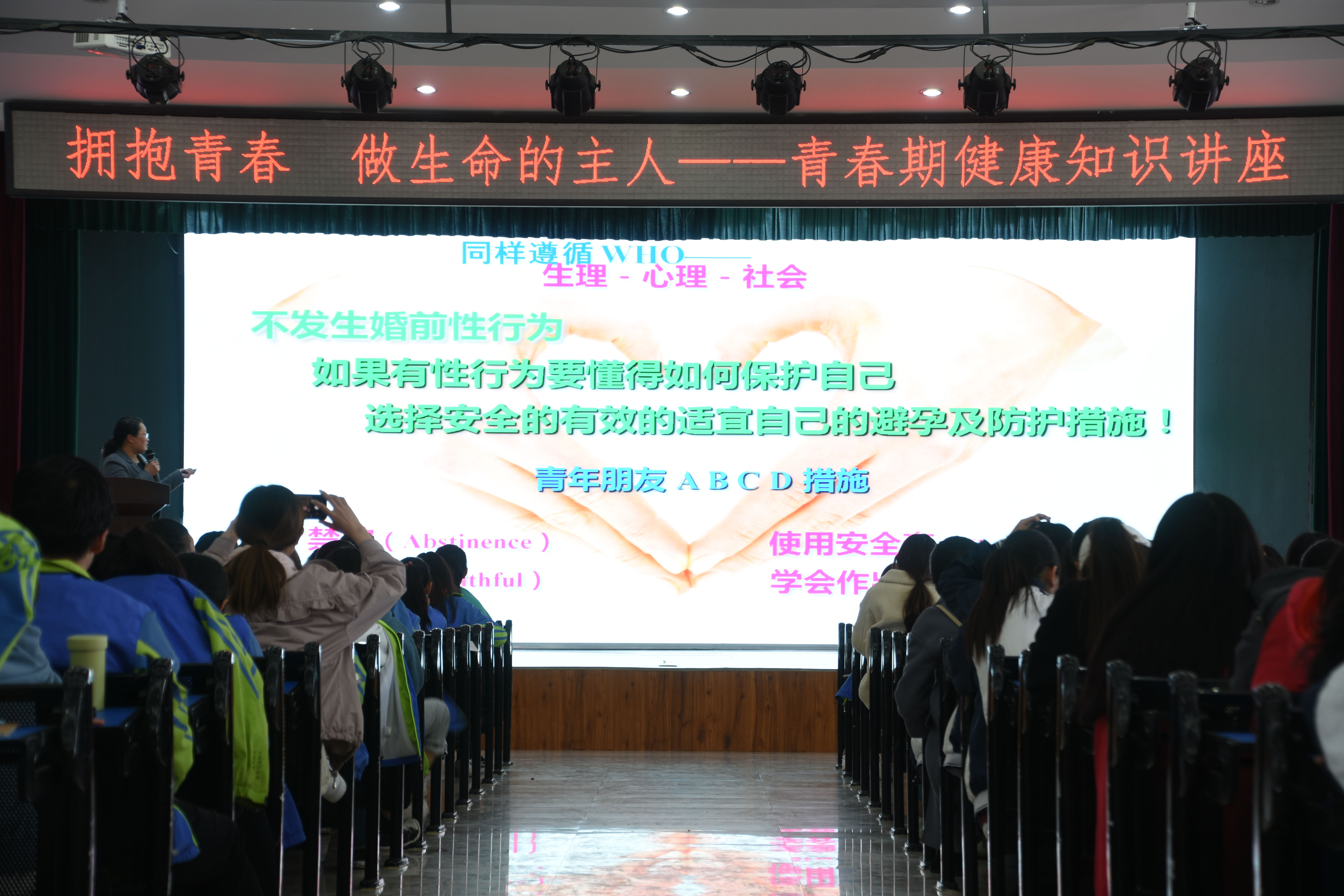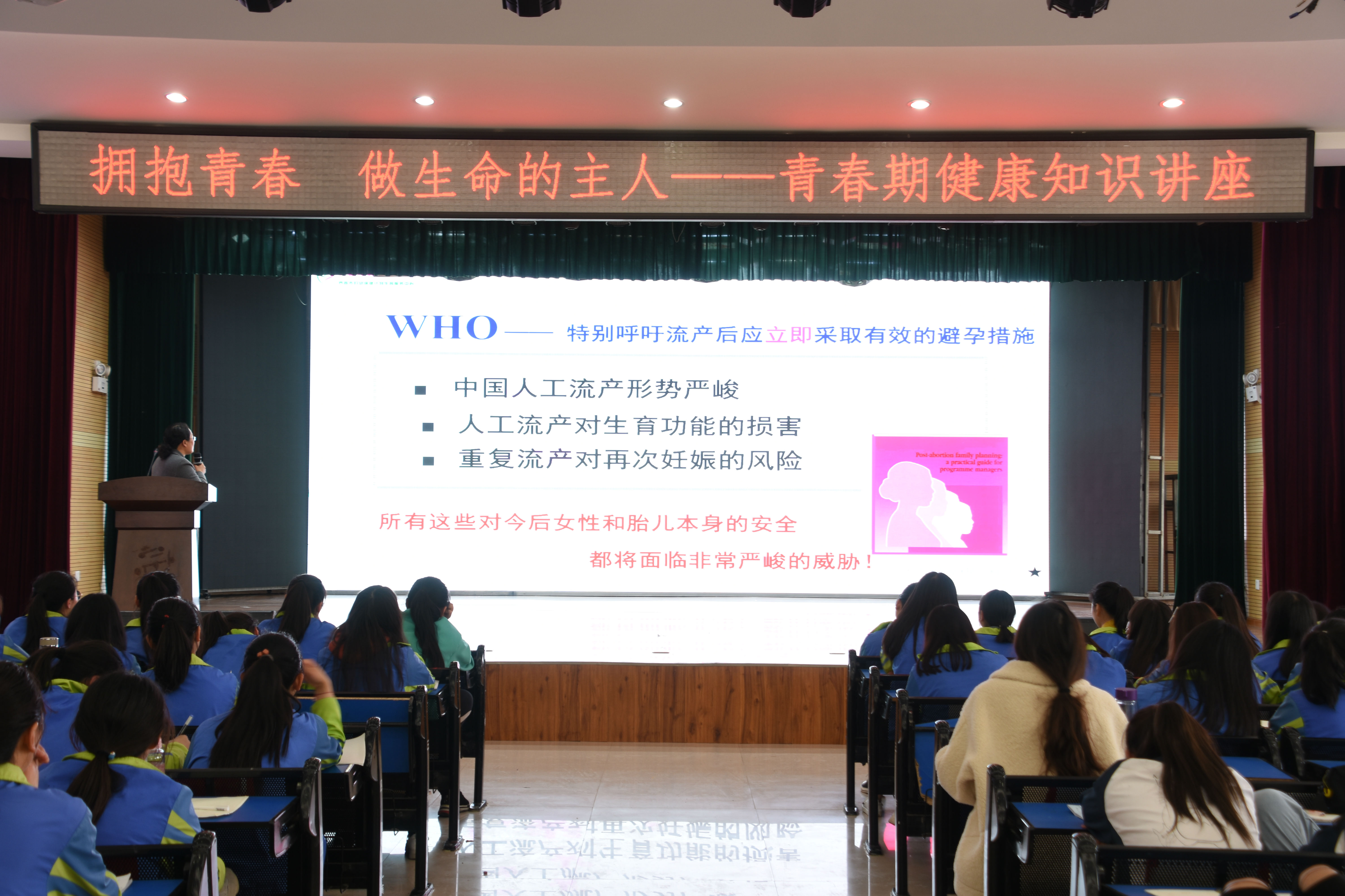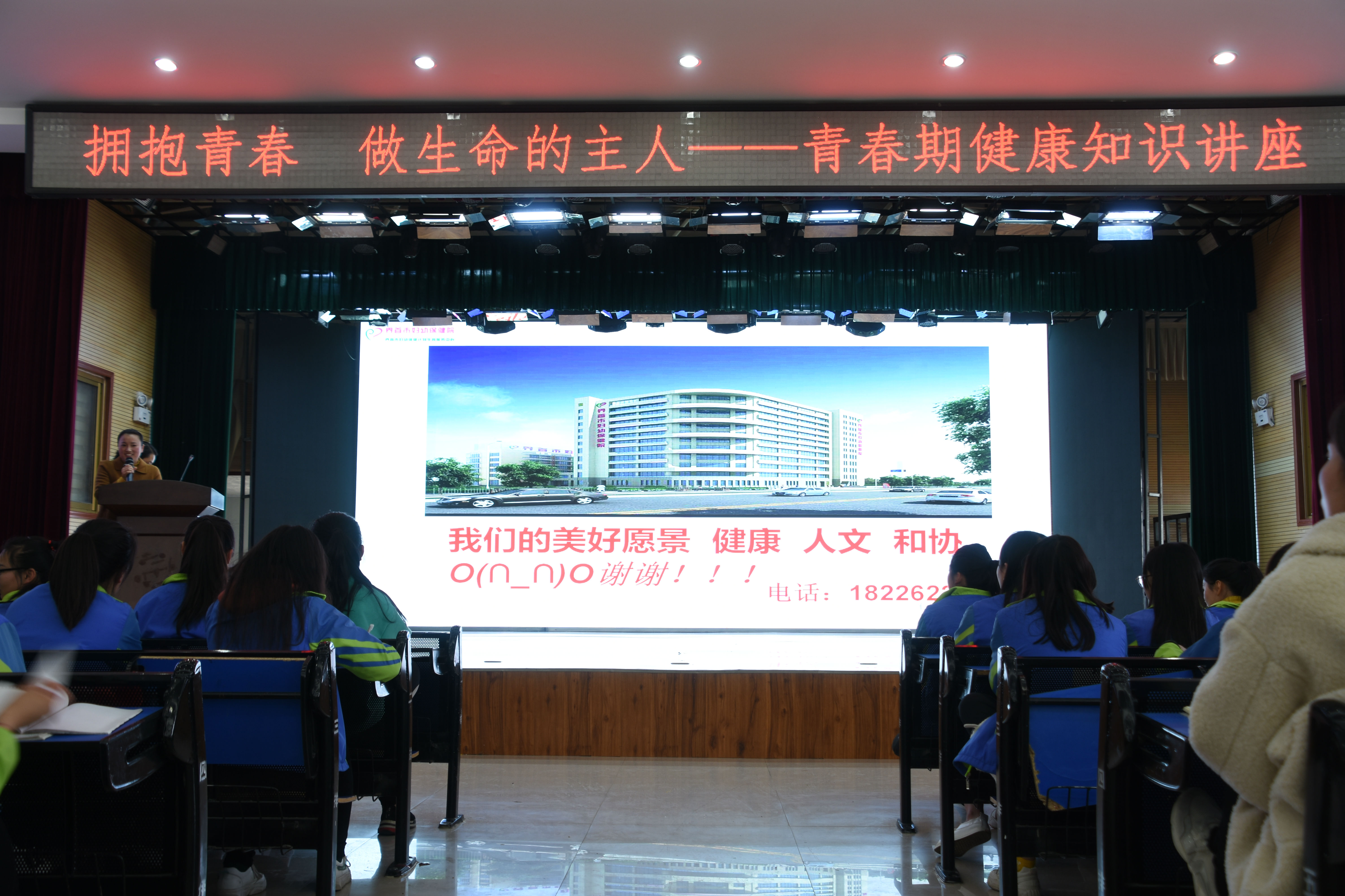 为加强女生青春期教育,提高女生健康常识与水平,树立健康生活理念,4月11日下午,阜阳科技工程学校特邀请市妇幼保健院主任牛芳对艺术服务部500多位女生举行了“拥抱青春, 做生命的主人”青春期健康知识讲座。