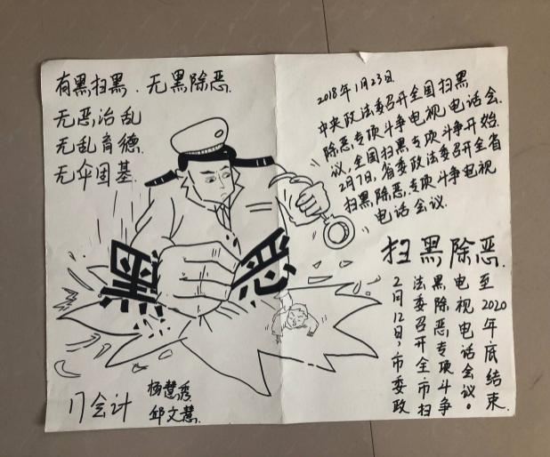 学校积极组织教师进行扫黑除恶知识竞赛,还多方面营造扫黑除恶的活动气氛,将扫黑除恶的活动落到实处。学校积极开展扫黑除恶手抄报、微视频比赛。