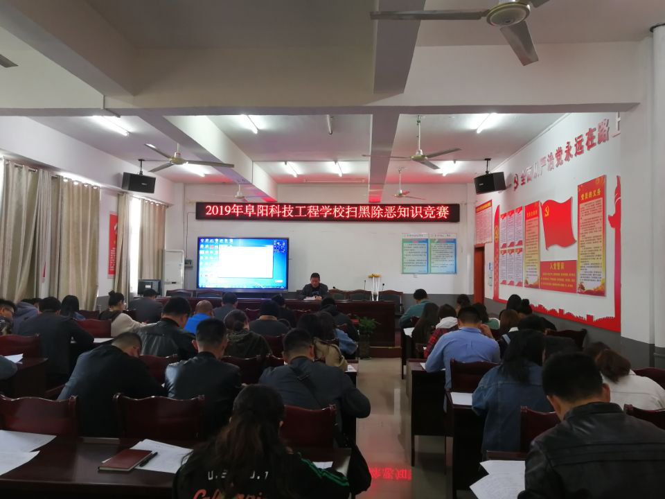 为深入贯彻落实党的十九大精神,大力整治侵害群众利益的腐败和作风问题,营造一个和谐、安全的校园环境,阜阳科技工程学校积极开展了扫黑除恶工作系列活动,取得了很好成效。