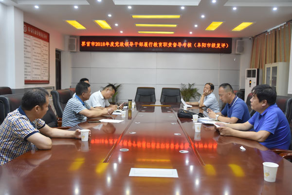 2019年7月30日,界首市2018年度党政干部履行教育职责督导考核阜阳市复核组成员、阜阳市职教局副局长宋斌一行在界首市教育局副局长张文平等陪同下,到阜阳科技工程学校进行现场检查。