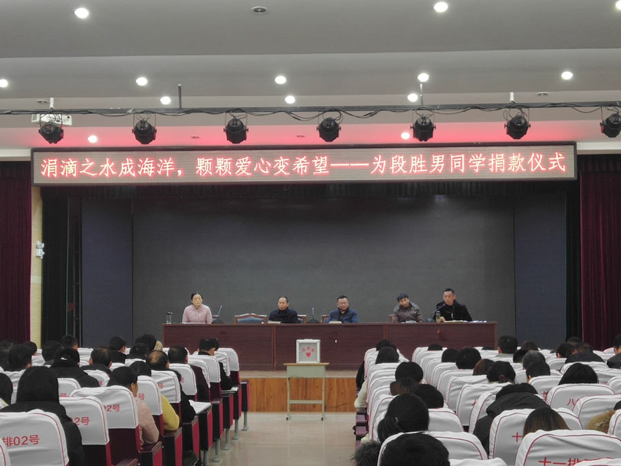 2017级幼师班段胜男同学近日被查出过敏性紫癜,不能进行运动,不能继续自己喜爱的音乐舞蹈课程学习,病情时好时坏。无情的病痛给这个家庭带来的不仅是昂贵的治疗费用,还有巨大的痛苦和打击。学校团委向全体师生发出“涓滴之水成海洋,颗颗爱心变希望”的爱心捐款倡议,立即得到了全体师生的积极响应。