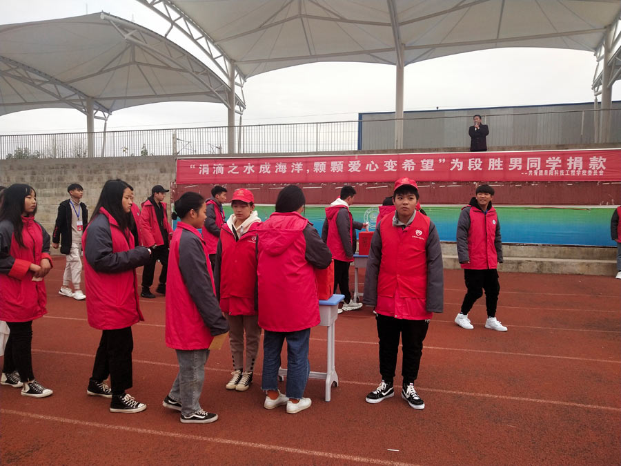 自倡议书发出以来,阜阳科技工程学校南北两个校区的全体师生积极行动起来,11月25日,两个校区的学生分别集聚操场参加段胜男同学的爱心募捐活。下午两个校区的教师大会上,教师们纷纷伸出援助之手,积极参加到这次“献爱心捐款”活动中来,点滴汇聚,爱心汪洋,无私助人,温暖真情。短短一天的募捐,南北校区共募集到近2万元善款。