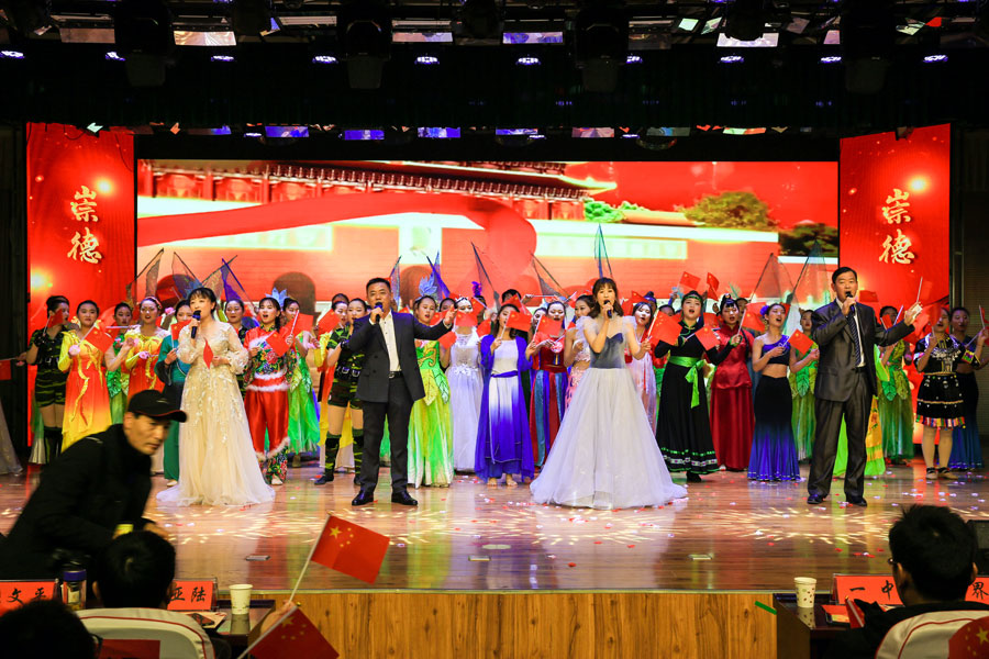 学校精心组织的演出也美轮美奂,舞蹈《盛世欢歌》《远航》展示了职教人拼搏进取、不折不挠的精神品格,同时也是对伟大祖国的赞美,师生群舞《礼赞新时代》等优秀节目展示了学校师生青春活力,积极向上的精神风貌,台上台下共唱《我和我的祖国》更是把颁奖典礼推向高潮。