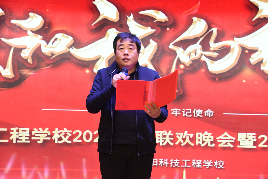 界首市教育局副局长张文平代表市教育局致辞,他说2019年我市职业教育喜事不断、捷报频传、硕果累累,阜阳科技工程学校全体职教人凝心聚力、革故鼎新、攻坚克难,学校基层党组织荣获阜阳市五星级基层党组织;在全国职业院校技能大赛中获得金牌一块、银牌两块、铜牌一块,实现了阜阳市技能大赛金牌零突破,位居阜阳市第一;两位教师分别在全国中等职业学校教师信息化教学设计与说课交流活动中荣获一等奖;安徽省质量提升工程12个项目顺利通过验收,学校综合实力进一步提高,办学质量连年攀升,社会声誉日益提高。他希望阜阳科技工程学校继续外塑形象,内聚人心,凝心聚力,坚定前行,力争一流。