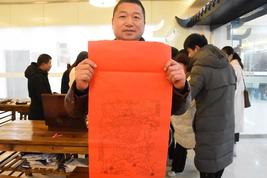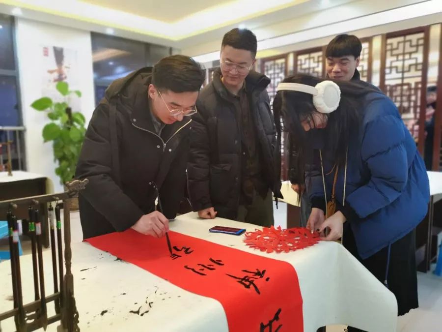 活动特邀请了贾玉峰和徐涛两位非遗传承人,他们用巧手现场展示了非遗文化的魅力,谷腾飞现场书写春联,为大家献上新年祝福,徐涛为大家讲解了木版年画。
