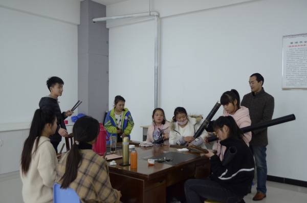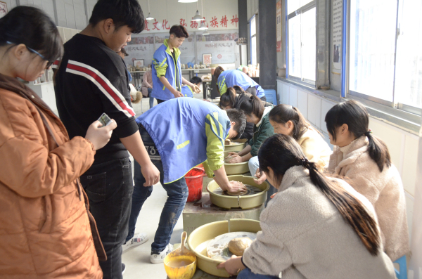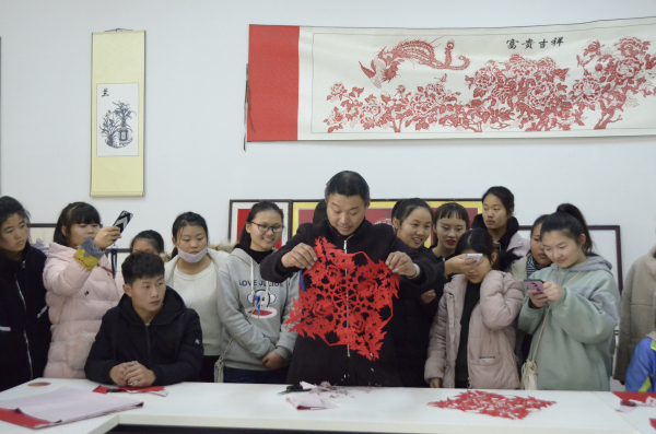 11月28日上午,皖北经济技术学校师生20多人来到阜阳科技工程学校非遗中心进行参观体验活动。