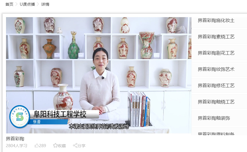 推荐课程包括界首彩陶、竹编、界首剪纸、书法、中华茶艺、国画及木刻版画。其中,竹编课程还被学习强国平台选用。目前,界首剪纸访问量8700多人次,界首彩陶访问量2800多次,界首竹编等课程正在审核中。