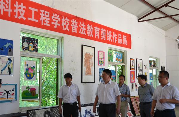 阜阳市政法委副书记、依法治市办公室主任、司法局局长程曙光等一行3人在界首市政法委副书记龚剑、界首市司法局局长戴海波的陪同下通过浏览展板、察看宣传栏、查阅资料、实地参观非遗普法彩陶、剪纸作品展等方式,检查了阜阳科技工程学校“六五”普法开展情况。闫锋校长从法制教育活动的制度建设、阵地建设和活动载体等三个方面汇报了学校开展“六五”普法的取得成果。