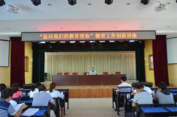8月27日,阜阳科技工程学校举行2016年德育创新暨班主任培训会。校长闫锋参加培训,并做了《追问我们的教育使命》主题讲座。