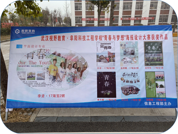 11月30日,阜阳科技工程学校举行了“武汉视野阜阳科技工程学校‘青春与梦想’海报设计”颁奖典礼。阜阳科技工程学校教务处主任张军、武汉视野教育咨询有限公司胡文华、阜阳科技工程学校信息工程部负责人李明光及电商专业全体学生参加了典礼。