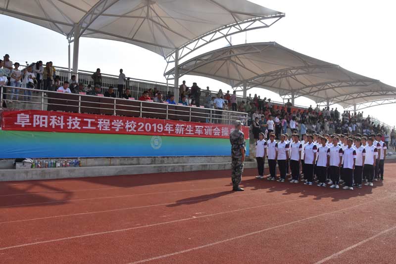 --阜阳科技工程学校举行2019级新生军训会操表演