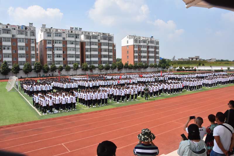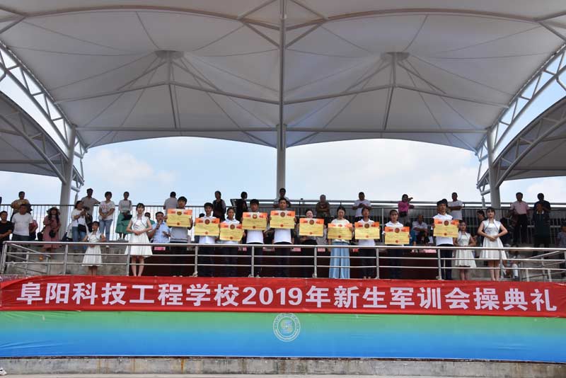 2019年9月6日上午,阜阳科技工程学校举行了2019新生军训会操表演。校长于洪波2019级班主任及学生家长出席了会演