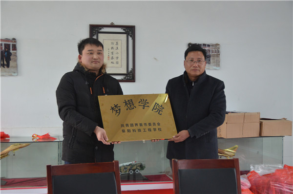 本次我市“梦想学院”落户学校是砖集镇姜洼小学,承接帮扶的志愿学校为阜阳科技工程学校,双方负责人共同签订了结对对接帮扶协议,共同为“梦想学院”揭牌。阜阳科技工程学校还为姜洼小学的小朋友们带来了书包、文具等新年礼物,希望小学生们能够努力学习,健康成长。