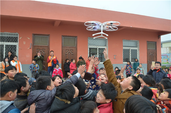 简短的启动仪式后,“梦想学院”的第一次教学就正式开始了,阜阳科技工程学校的志愿者教师分别给五个年级的小学生上了舞蹈、音乐、体育、美术、科普等课程。美术课上师精心制作的小学生美术画课件吸引着孩子们的大眼睛,科普课上,第一次接触无人机的孩子们,异常地兴奋和投入。