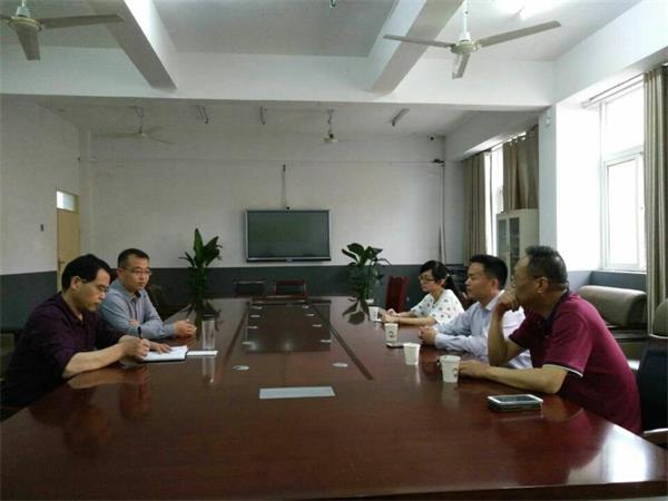 2016年6月2日下午,界首市田营工业园区管委会副主任王文勇、安徽华铂再生资源科技有限公司副总经理沈岑宽一行来到阜阳科技工程学校洽谈校企合作事宜。阜阳科技工程学校校长闫峰、培训处负责人等接待并参与了洽谈。