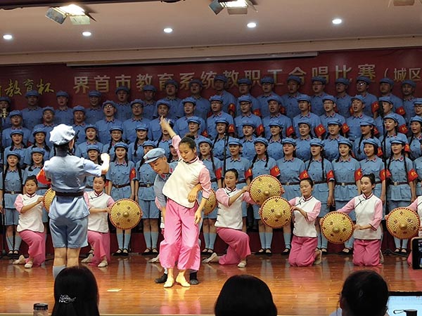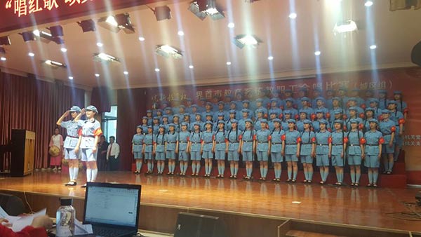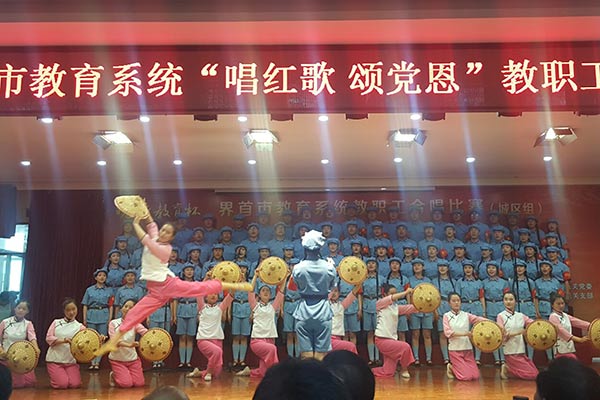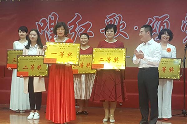 5月5日上午,阜阳科技工程学校参加了有界首市教育局机关党委主办的“皖新教育杯”教育系统“唱红歌 颂党恩”教职工合唱比赛,并荣获总分第二名的好成绩。歌唱演员身穿红军服装,精神饱满,英姿飒爽,满怀深情地唱响《军民团结一家亲》和《七律·长征》两首歌曲,用歌声表达了对党的深厚感情,永远热爱党、拥护党。演员服装统一,歌唱到位,声音洪亮,与舞蹈表演配合默契,浑然融为一体,达到了良好的视觉效果和听觉效果,征服了观众和评委,赢得了阵阵掌声。