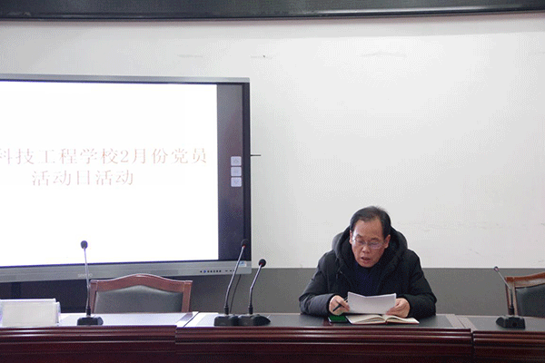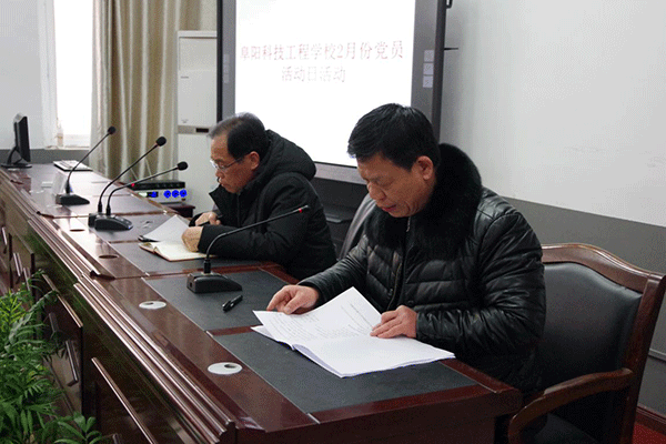 2月26日,阜阳科技工程学??沽硕路莸吃被疃栈疃?。全体党员参加了此次活动。会议由党总支书记穆达主持。