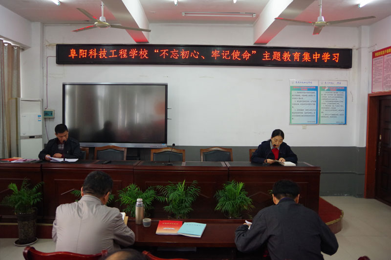10月13日上午,阜阳科技工程学校在笃行楼四楼东会议室开展了“不忘初心、牢记使命”主题教育集中学习。